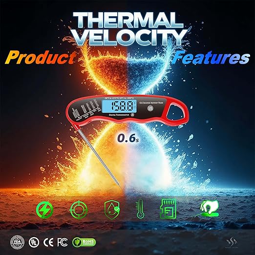 - ⚡ Lightning-Fast instant accurate Food Thermometer /Meat Probe /Pen read within 1s (0.6 s). No guessing, no stress—Perfect taste and texture without delay. Reducing over/under-cooking meat (Steak,Chicken...), Every bite meets the mark.